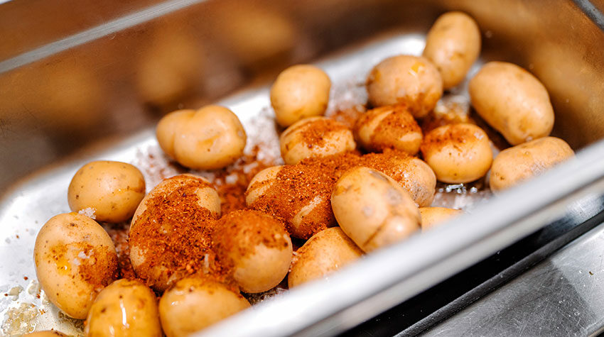 Danach werden die Kartoffeln bei 160 °C für 30 Minuten im Ofen gebacken.