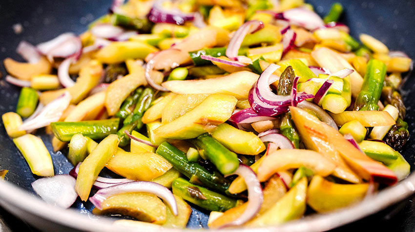 - Zubereitung des Rhabarber-Spargel-Ragouts