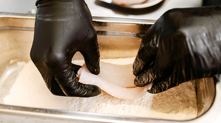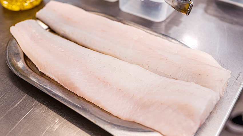In unserem Fall wird der Zander zugeschnitten und abgetupft. Die Haut wird in ca. 1 cm Abstand eingeschnitten und danach auf der Hautseite leicht mehliert. Gebt den Zander dann in eine Pfanne mit Öl und bratet ihn auf der Hautseite zu 2/3 des Garprozzesses bei mittlerer Hitze. Zum Schluss wendet ihr ihn noch kurz und würzt ihn dann.