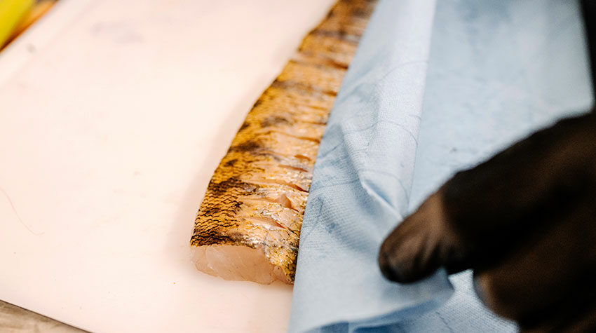 Nun wird der Zander abgetupft.